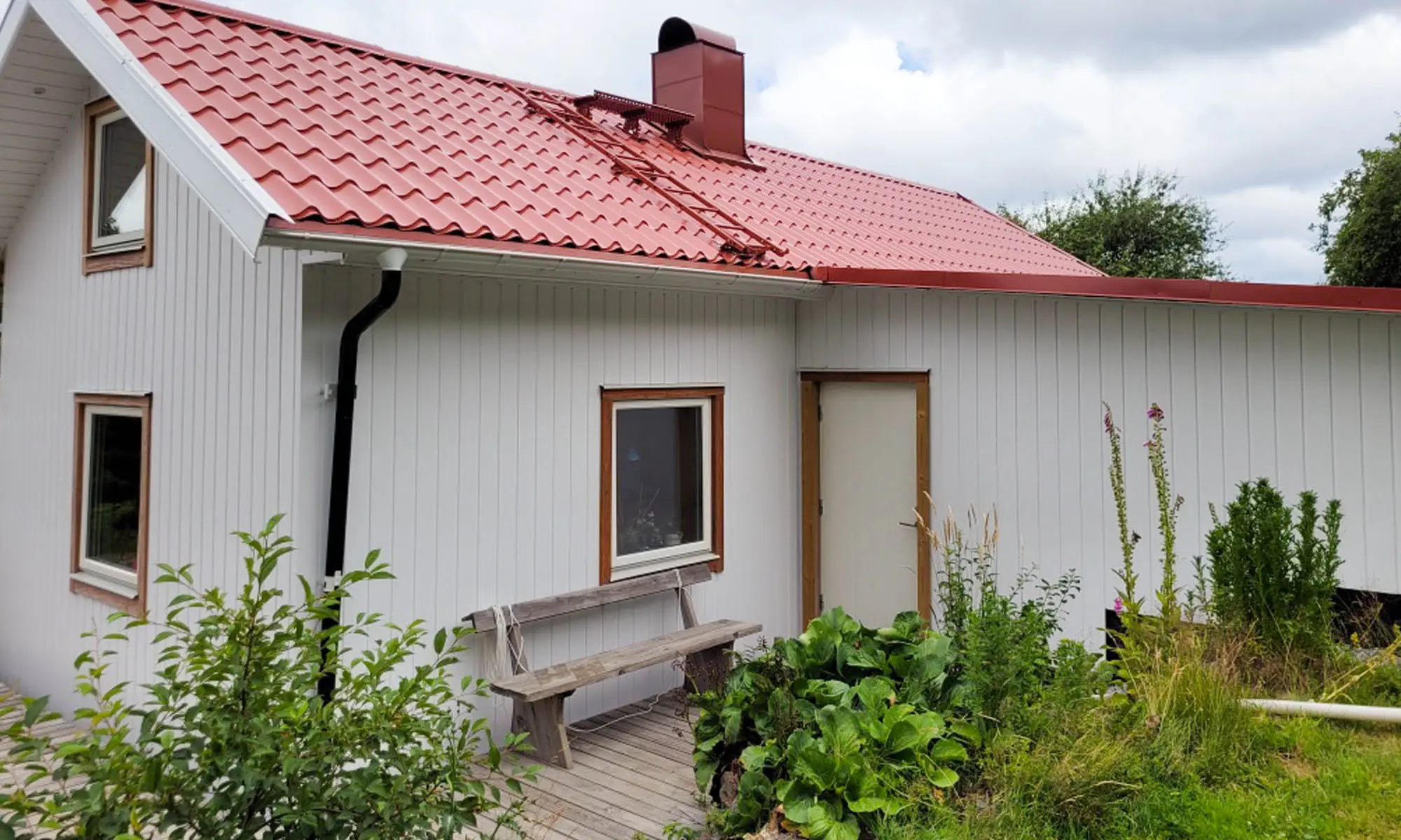 Upptäck effekten: När stående Exklusivpanel möter röda detaljer på fönsterfodren får huset nytt liv – ett verkligt exempel på